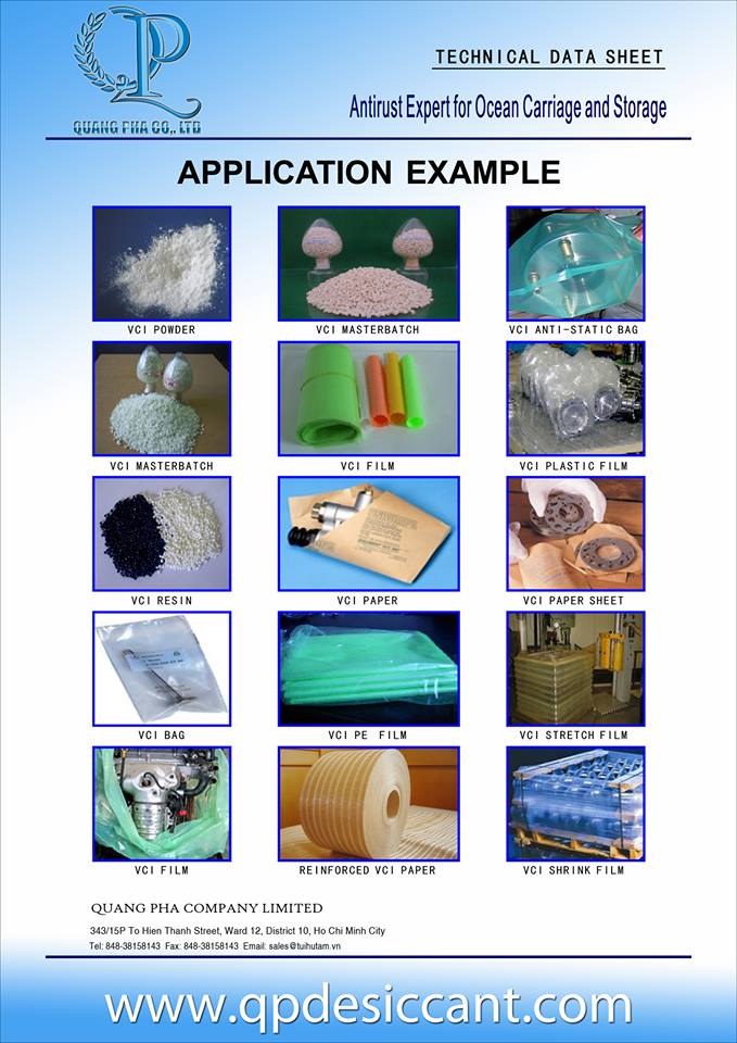 VCI is abbreviation of English words Volatile Corrosion Inhibitor. It is a kind of volatile corrosion inhibitor, abbreviated as volatile antirust product. After packaging articles with volatile antirust products, the antirust particle of antirust products will turn into gas, them form a protective film on surface of metal products, to elminate the possibility of metal particle contact with water and oxygen, thus to archieve antirust effect. Meanwhile, compared with other antirust products, difference of our company's antirust products is that, gas diffusion amount of the internal antirust particle after packaging is automatically regulated: When temperature or humidity increases, diffusion amount will also increase, otherwise, diffusion amount will decrease. But when internal and external environments are relatively stable, antirust particle will stop volatilizing outwards temporarily, and stay in the best antirust state. While internal and external environments change again, antirust partical will volatilize agian automatically regulate internal gas density of packaging articles, so to maintain the packaging article in the most stable antirust state.